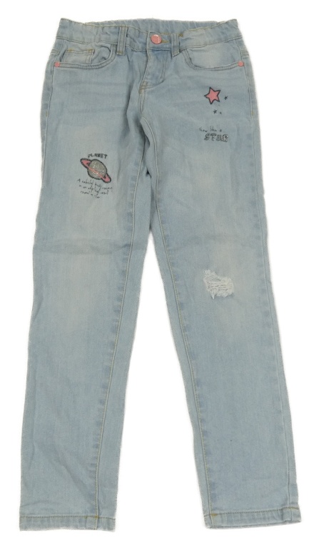 Svetlomodré skinny rifle s obrázkami Y.F.K.