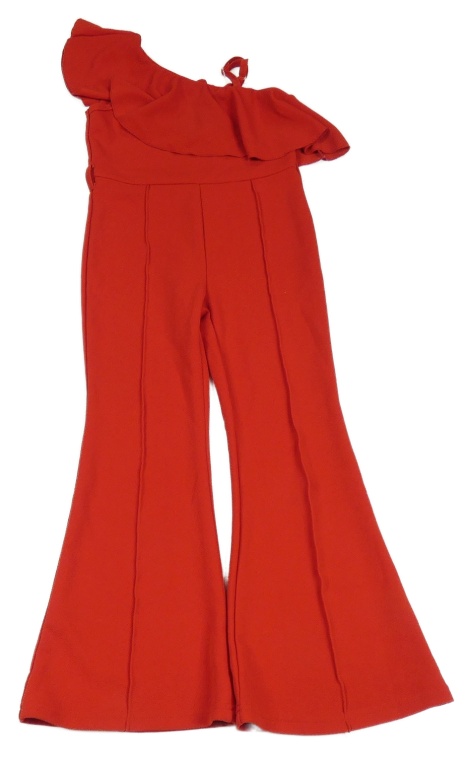 Červený flare nohavicový overal s volánikom