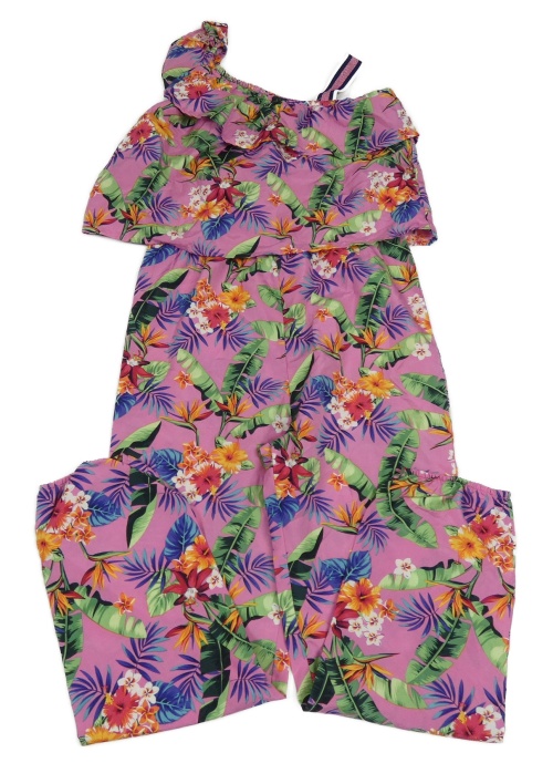 Ružovo-farebný kvetovaný ľahký nohavicový overal