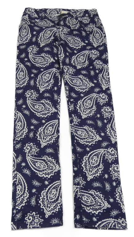 Tmavomodro-biele vzorované plátenné nohavice