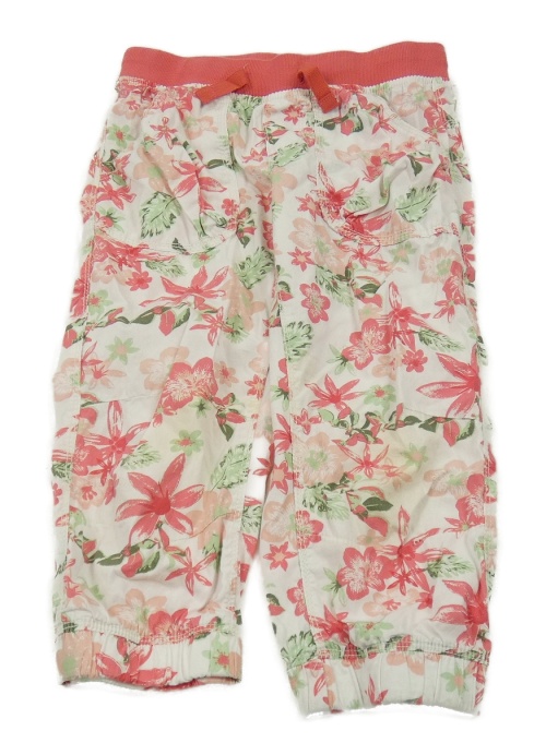 Smetanovo-ružové kvetované plátenné capri nohavice CrashOne