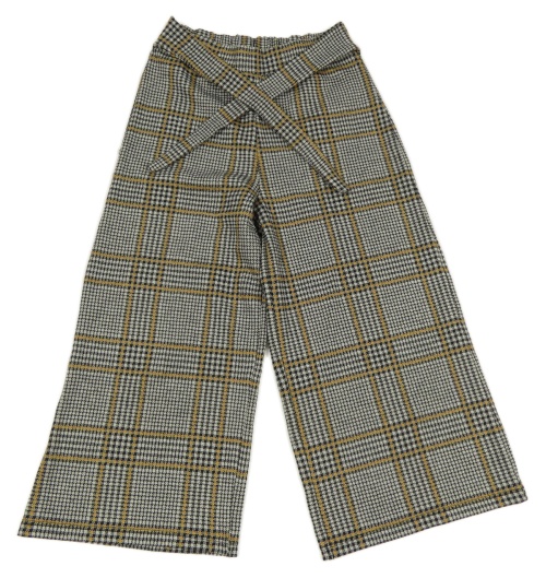 Čierno-svetlošedá -horčicové kockované široké crop nohavice so zavazováním F&F