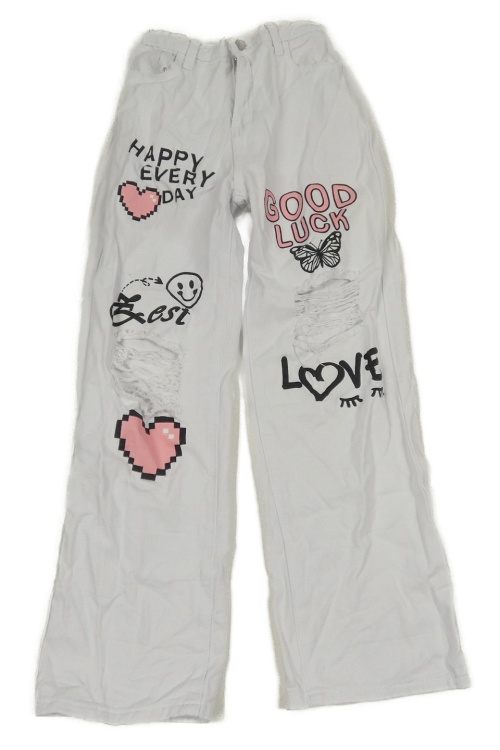 Biele voľné é rifle s potlačou a dierami Shein