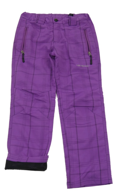 Fialové kockované šušťákové nohavice