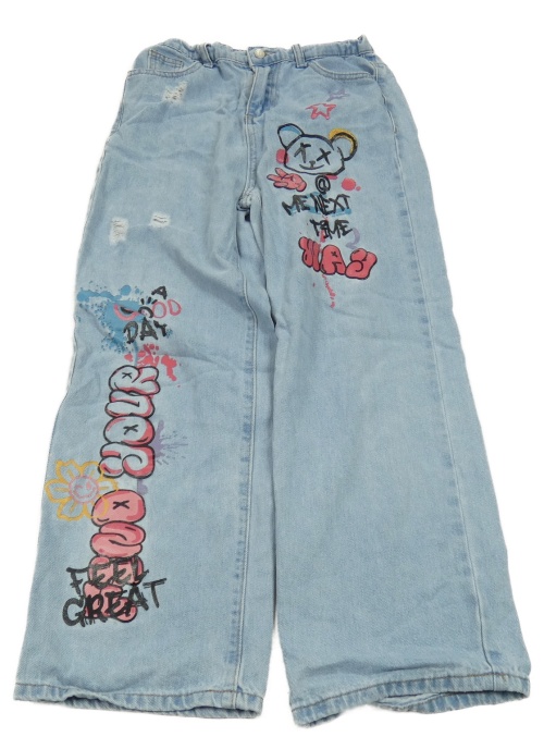 Svetlomodré široké rifle s nápisom shein
