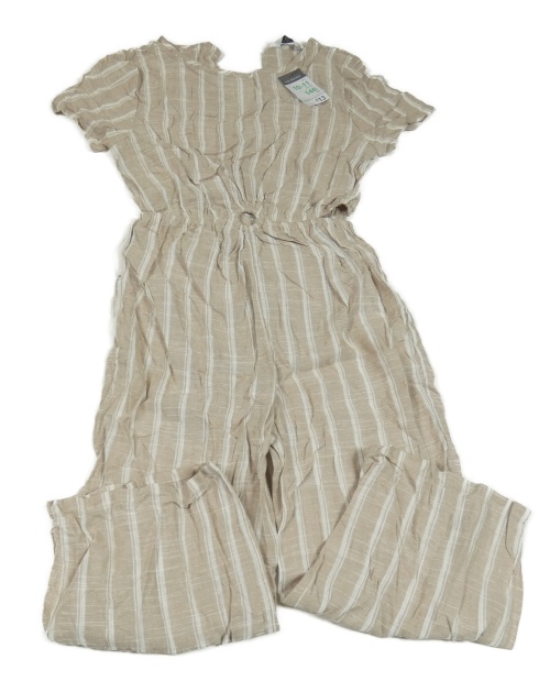 Nové - Béžovo-biely pruhovaný ľanový culottes overal s prestrihmi Primark