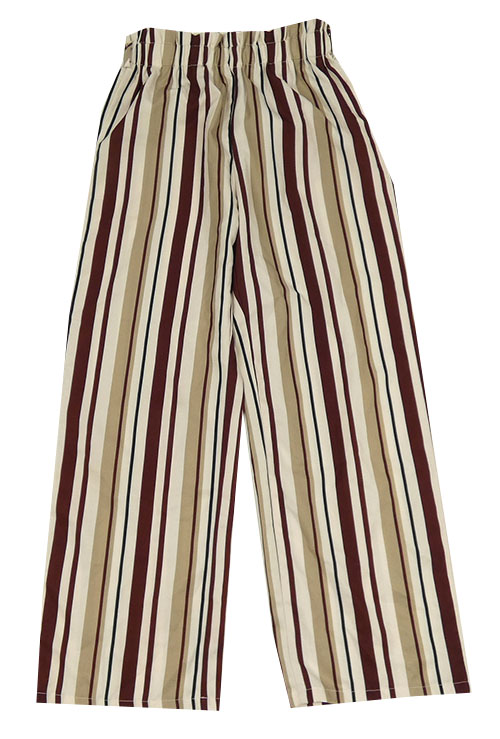 Smetanovo-béžovo-vínové pruhované paper bag ľahké nohavice SHEIN