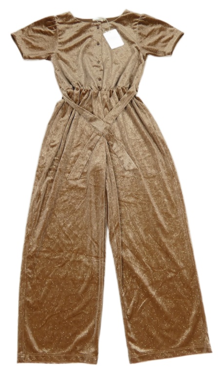 Nové - hnedý zamatový trblietavý nohavicový overal Sfera