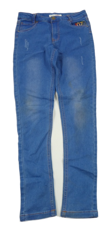 Modré skinny teplákové rifle s číslom a ošoupaného vzhledu CASTRO