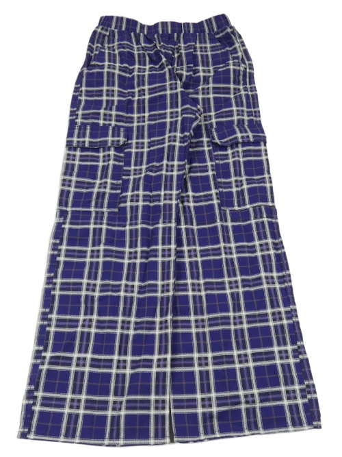 Tmavofialovo-bielo-hnedo-fialové kockované cargo wide leg plátenné nohavice H&M