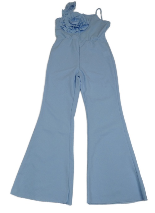 Svetlomodrý spoločenský nohavicový overal s kvetinou