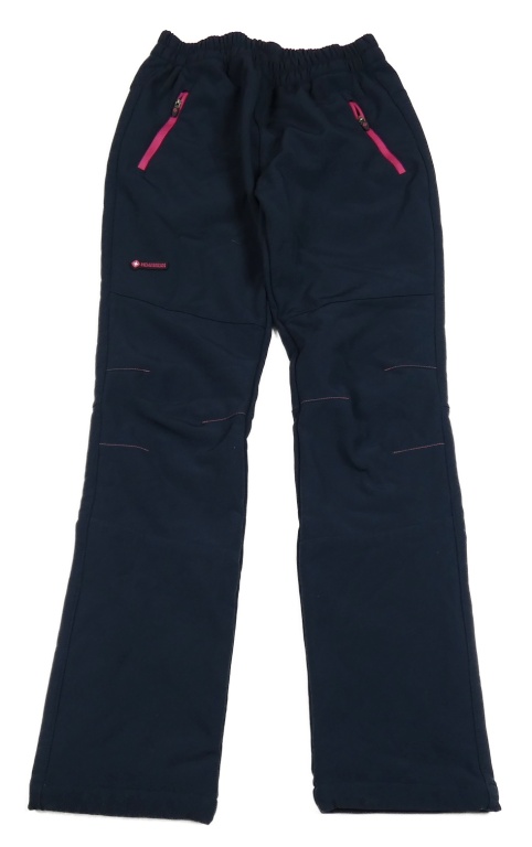 Tmavomodré sofsthellové nohavice s růžovými zipy