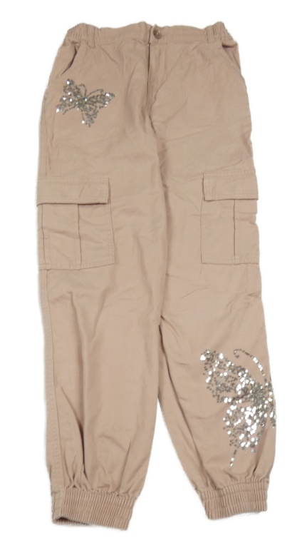 Svetloružové cargo cuff rifle s motýlky z flitrů F&F