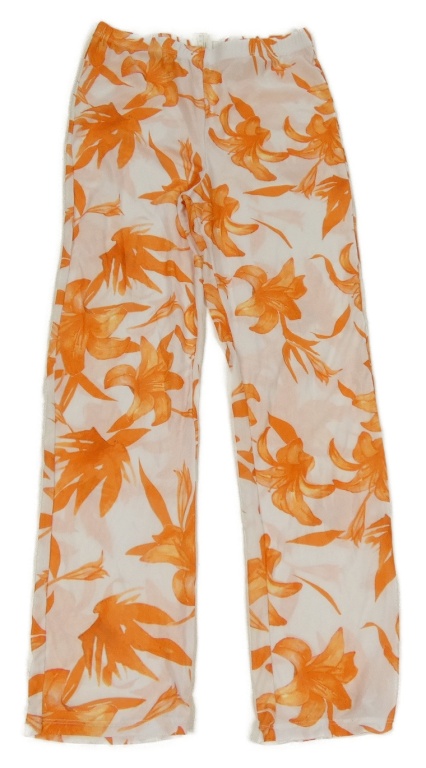 Biele sieťované průsvitné nohavice s oranžovými kvietkami SHEIN