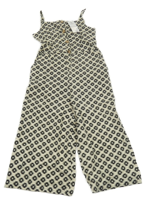 Nové - Béžovo-čierny vzorovaný ľanový nohavicový overal Matalan