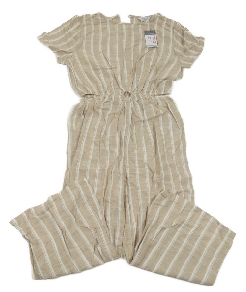 Nové - Béžovo-biely pruhovaný ľanový culottes overal s prestrihmi Primark
