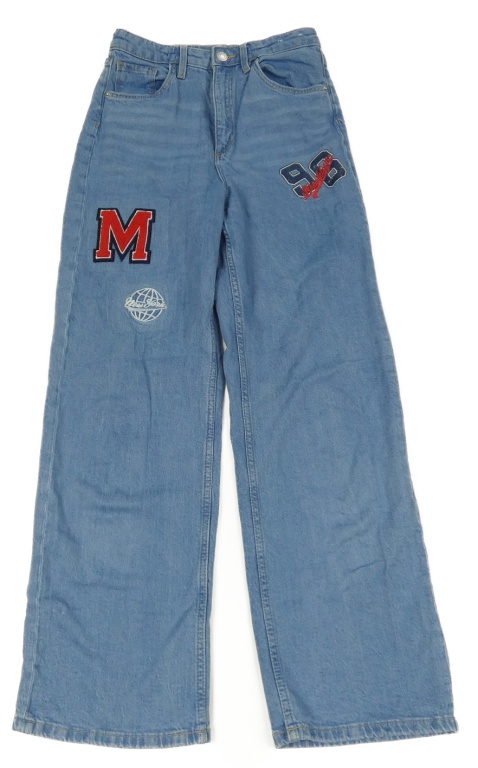 Svetlomodré široké rifle s číslami a písmenem H&M