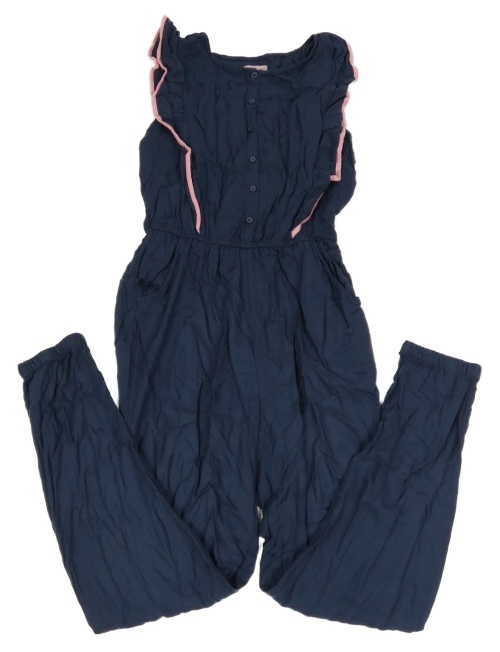 Tmavomodrý ľahký nohavicový overal s volánikmi alive