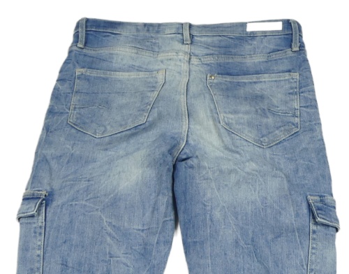 Svetlomodré šisované cargo skinny fit teplákové rifle so zipy H&M