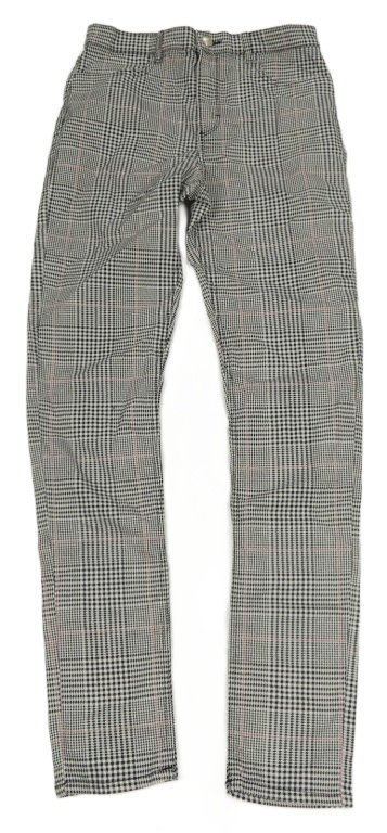 Čierno-bielo-červené kockované plátenné skinny nohavice H&M