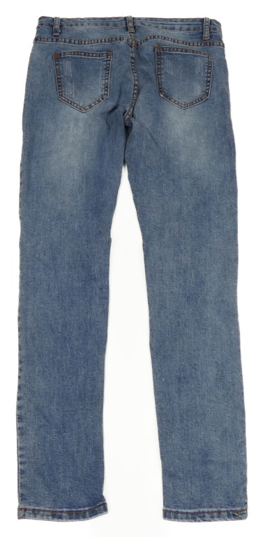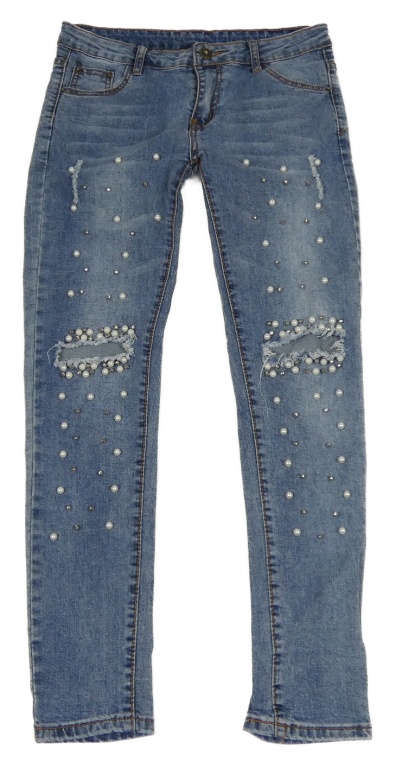 Modré skinny rifle s perlami a dírami na kolenou