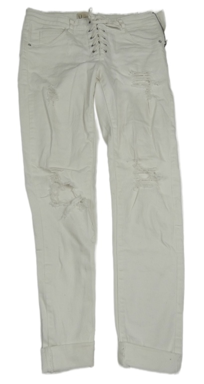 Biele skinny rifle s vyšúchaním a šnurovaním