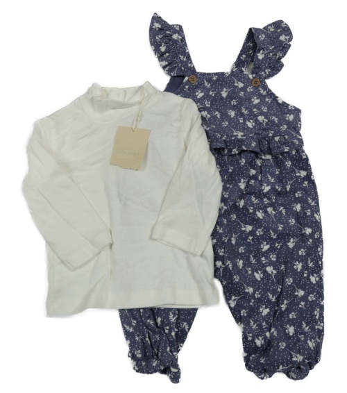 Nové - 2set- tmavomodré kvetinové podšité na traké manšestráky+ biele tričko Leigh Tucker