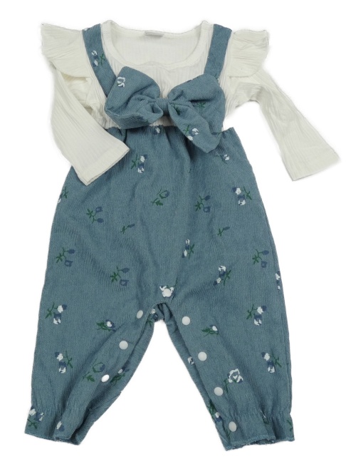 Bielo-modrý nohavicový overal s kvietkami