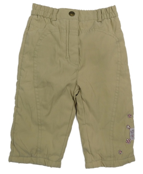 Béžové šušťákové zateplené nohavice s kvietkami