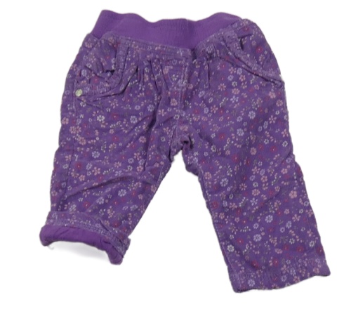 Tmavofialové menšestrové podšité nohavice s kvietkami a úpletovým pasom KANZ