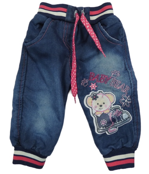 Tmavomodré zateplené cuff rifle s medvedíkom a úpletovým pasom