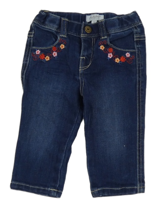 Tmavomodré rifle s výšivkami květů