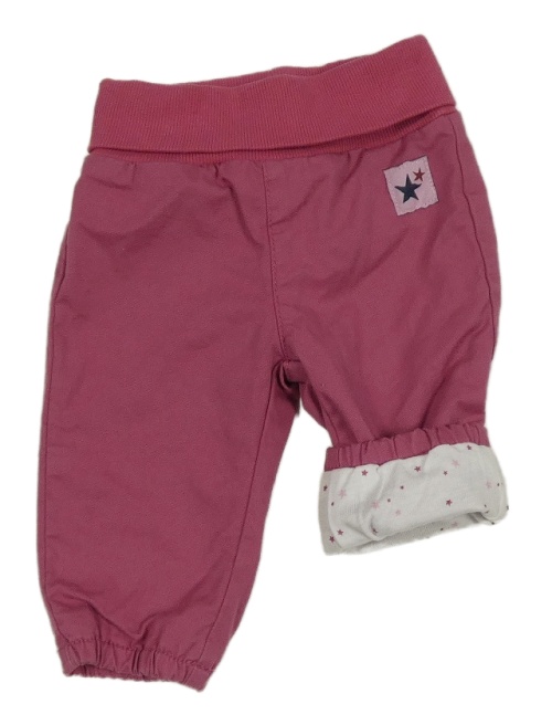 Růžovovínové cuff plátenné podšité nohavice s hviezdičkami a úpletovým pasom impidimpi
