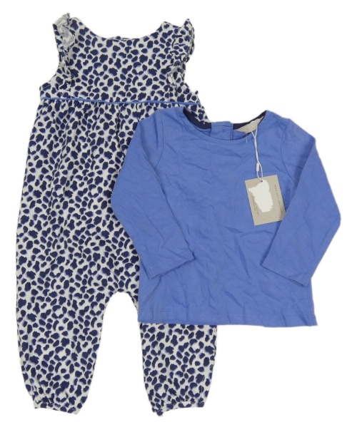 • Nový - 2Set - Bielo-tmavomodro-modrofialové vzorované na traké teplákové nohavice s volánky + modrofialové tričko John Lewis