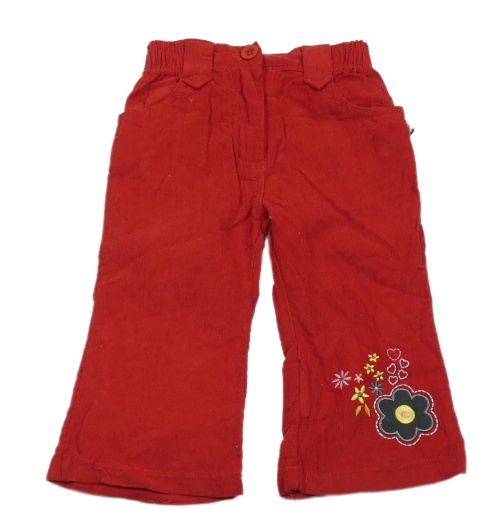 Červené wide leg manšestráky s kvetmi a srdiečkami