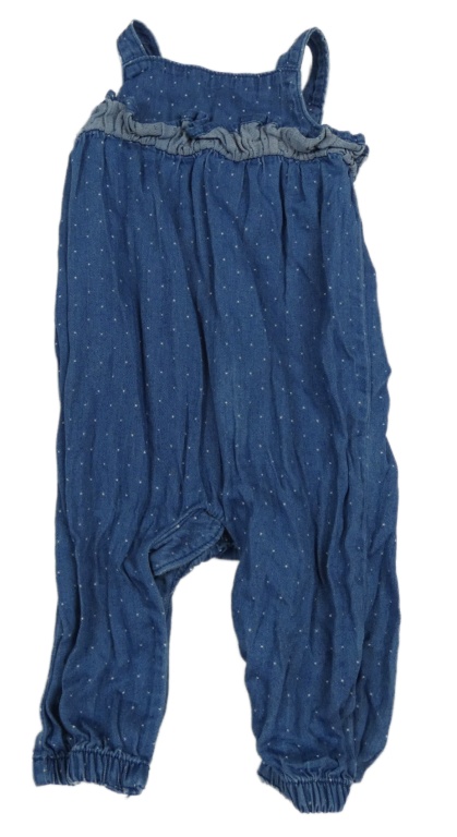 Modrý vzorovaný rifľový nohavicový overal s volánikom Tu