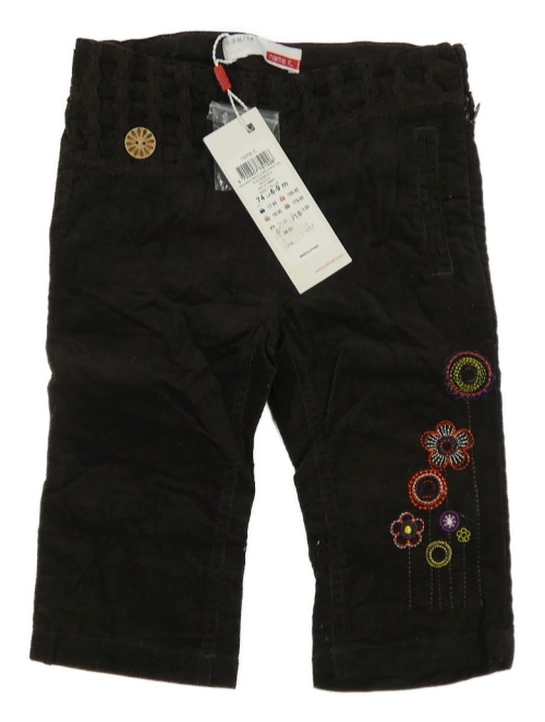 Nové - tmavohnedé podšité manšestráky s výšivkami květů Name it