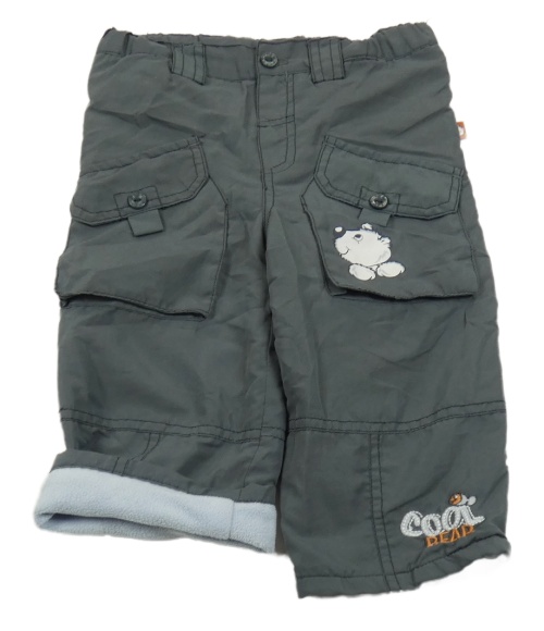 Tmavosivé šušťákové zateplené nohavice s vreckami a medvěďom