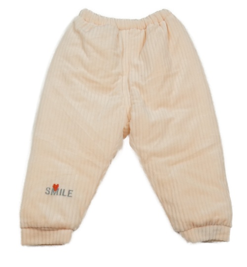 Marhuľové rebrované plyšové zateplené nohavice s nápisom a srdiečkom