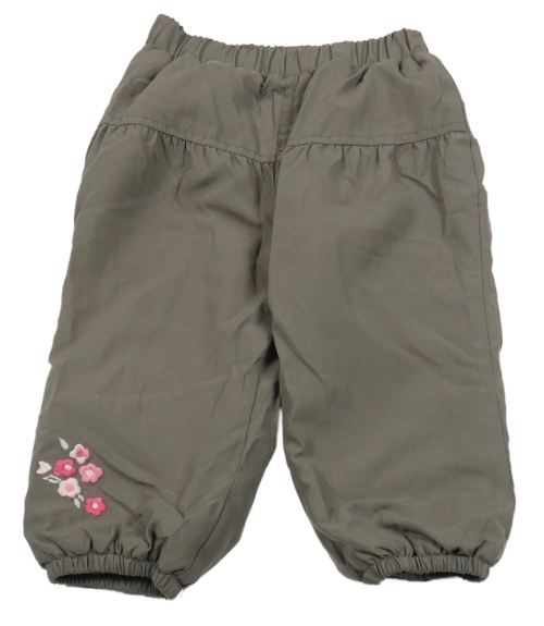 Hnedé šušťákové zateplené nohavice s kvietkami