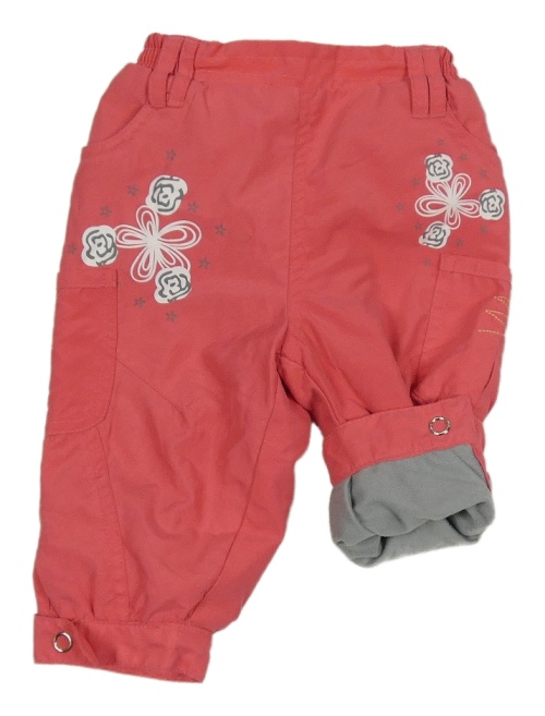 Ružové šušťákové zateplené nohavice s kvetmi