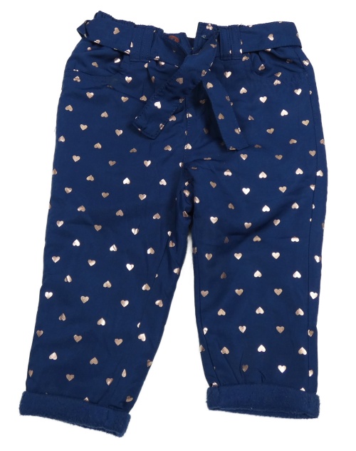 Tmavomodré šušťákové zateplené nohavice so srdiečkami a opaskom Ergee