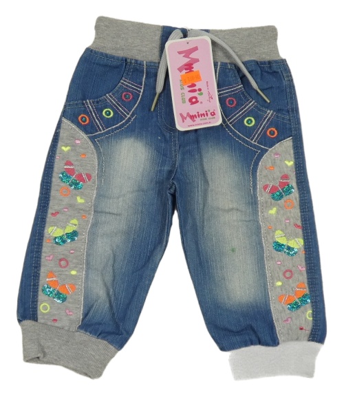 Nové - Světlemodro-sivé teplákové cuff rifle s motýlikmi a úpletovým pasom
