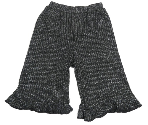 Tmavošedo-strieborné melírované rebrované široké nohavice s volánikmi ZARA