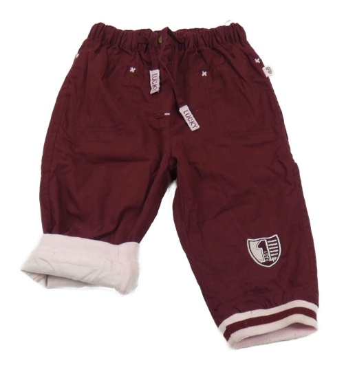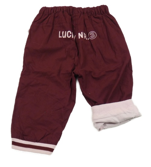 Vínové plátenné podšité nohavice s výšivkou