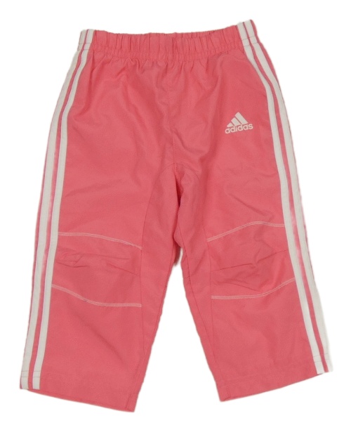 Ružové šušťákové podšité nohavice s pruhmi a logom Adidas