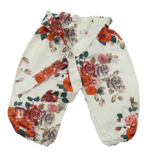 Biele kvetované ľahké nohavice s opaskom