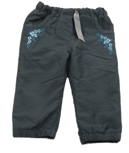 Tmavosivé šušťákové zateplené nohavice s výšivkou květů Topomini