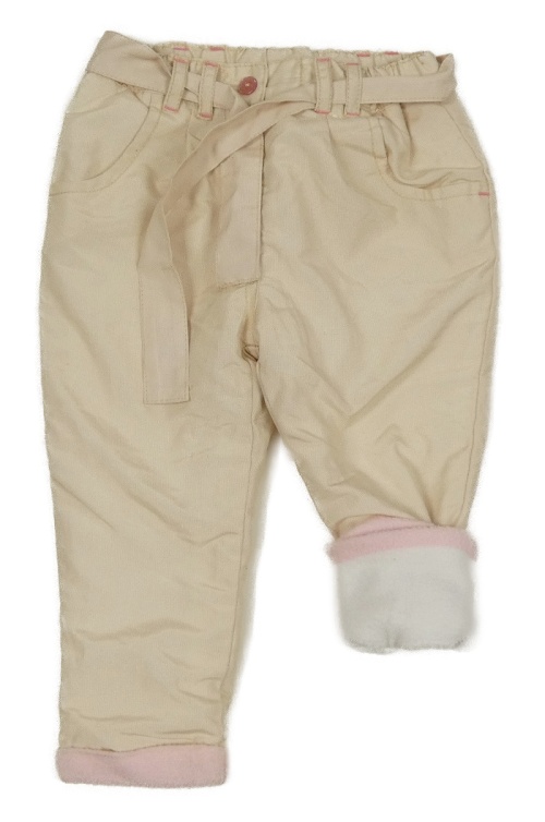 Béžovo-biele pruhované šušťákové zateplené nohavice s opaskom Ergee
