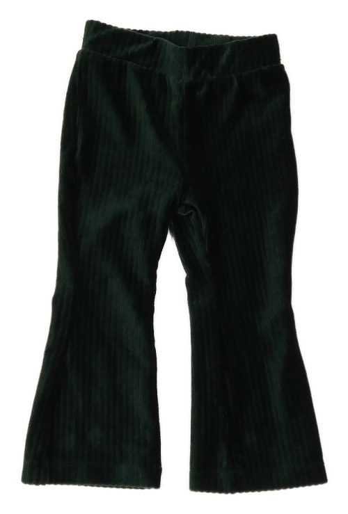 Tmavosmaragdové rebrované flare plyšové nohavice